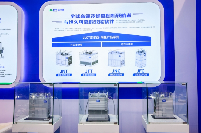 展会现场,吉尔西展台人气爆棚,均流技术展示,JNC 横流闭式冷却塔、JNT 横流开式冷却塔、JFT 逆流开式冷却塔等明星产品展出,吸引众多观众驻足观摩与深度咨询。