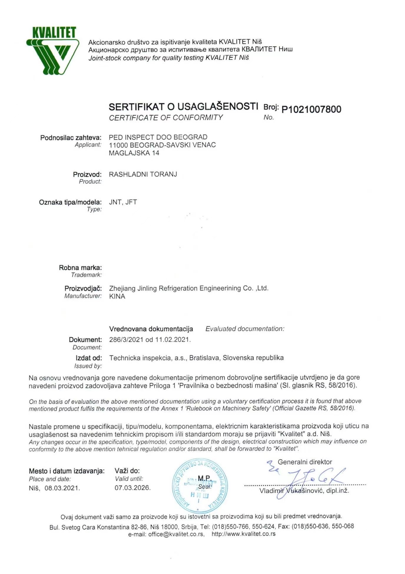 JFT平博在线平台-平博(中国)节能产品认证证书