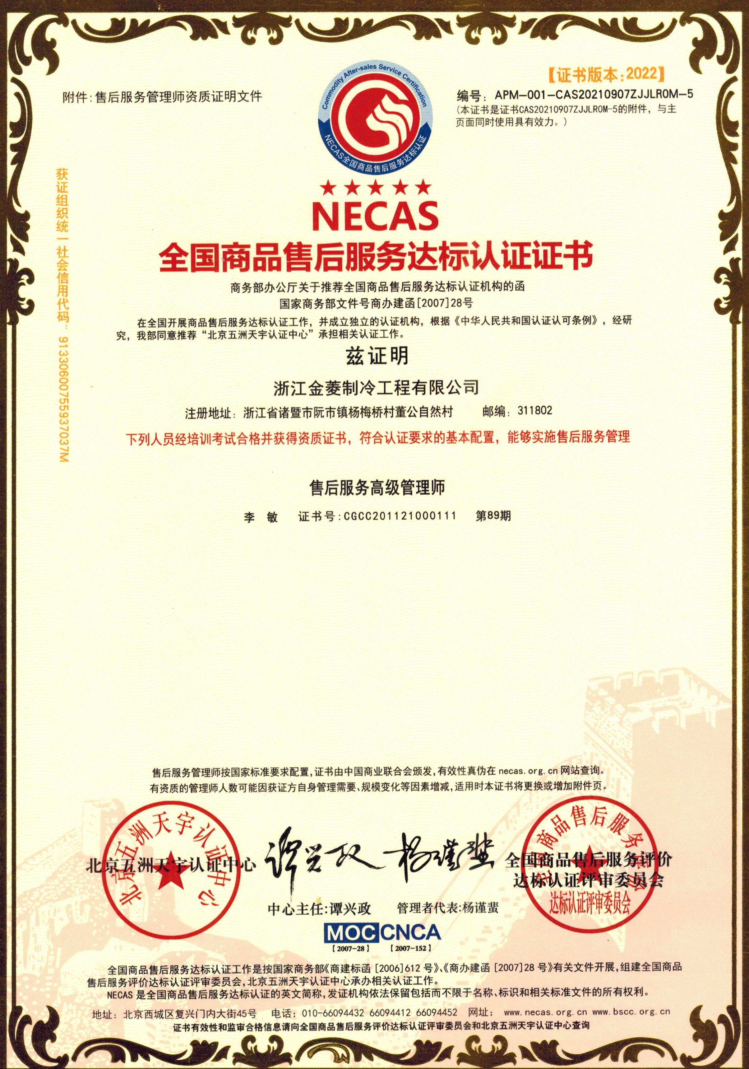售后服务管理体系证书